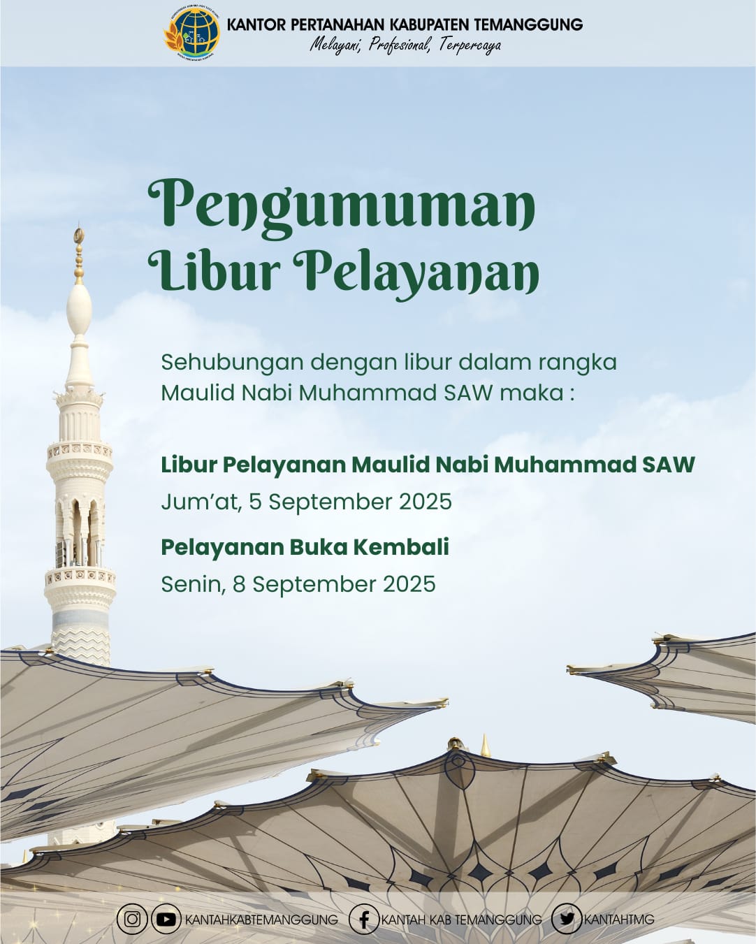 Pengumuman Libur Layanan dalam Rangka Peringatan Maulid Nabi Muhammad SAW